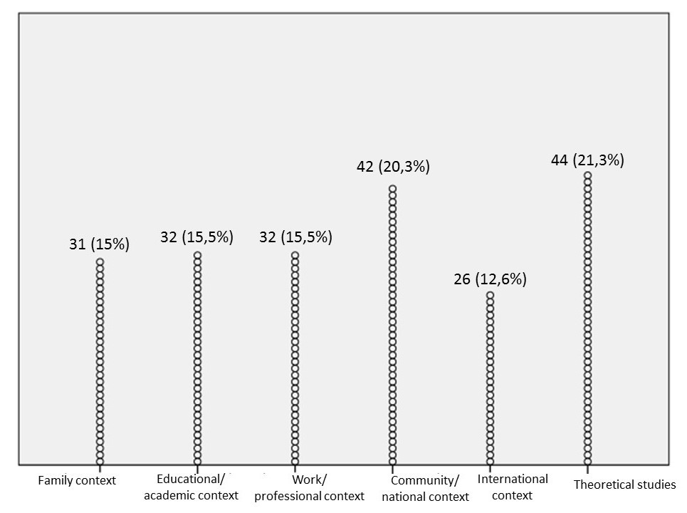 Mediation is widely considered an effective means of conflict resolution. Although some studies mention social environments where this practice takes place, they do so in an introductory or general manner. The objective of this study is to categorize social environments where conflict mediation is used and provide examples of conflicts that are tackled through mediation. A systematic literature review was designed to examine 207 articles published in scientific journals, for a 20-year period (1994-2014). Results showed five social environments (family, educational/academic, work/professional, community/national, and international contexts) and 45 subcategories of themes related to each context. The wide use of conflict mediation and its importance were discussed in the light of the Ecological Systems Theory.