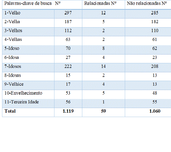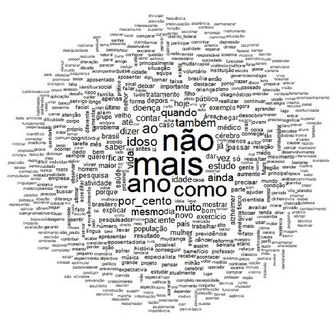 - Figura 3 – Frequência de palavras analisadas no conteúdo das notícias veiculadas pelo Correio Braziliense sobre velhice e envelhecimento entre 10/2017 a 02/2018. Brasília, DF, 2018.