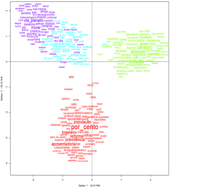 - Figura 2 – Representação das classes e frequências de palavras das notícias veiculadas pelo Correio Braziliense sobre velhice e envelhecimento entre 10/2017 a 02/2018. Brasília, DF, 2018.