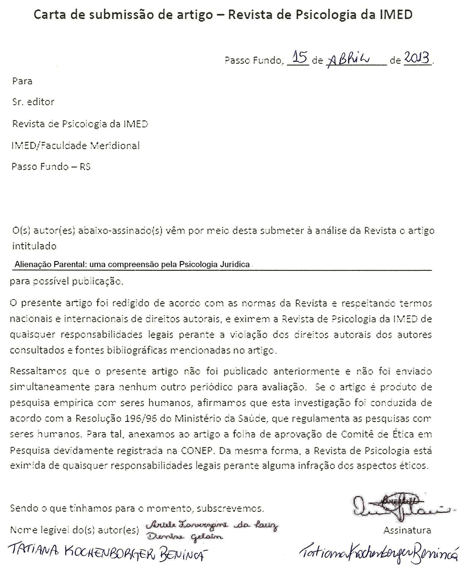 Rangel, E. H. P. & Pinheiro, G. L. (2009). Alienação parental. Revista Eletrônica Pensar Direito, 3 (1), 1-10.