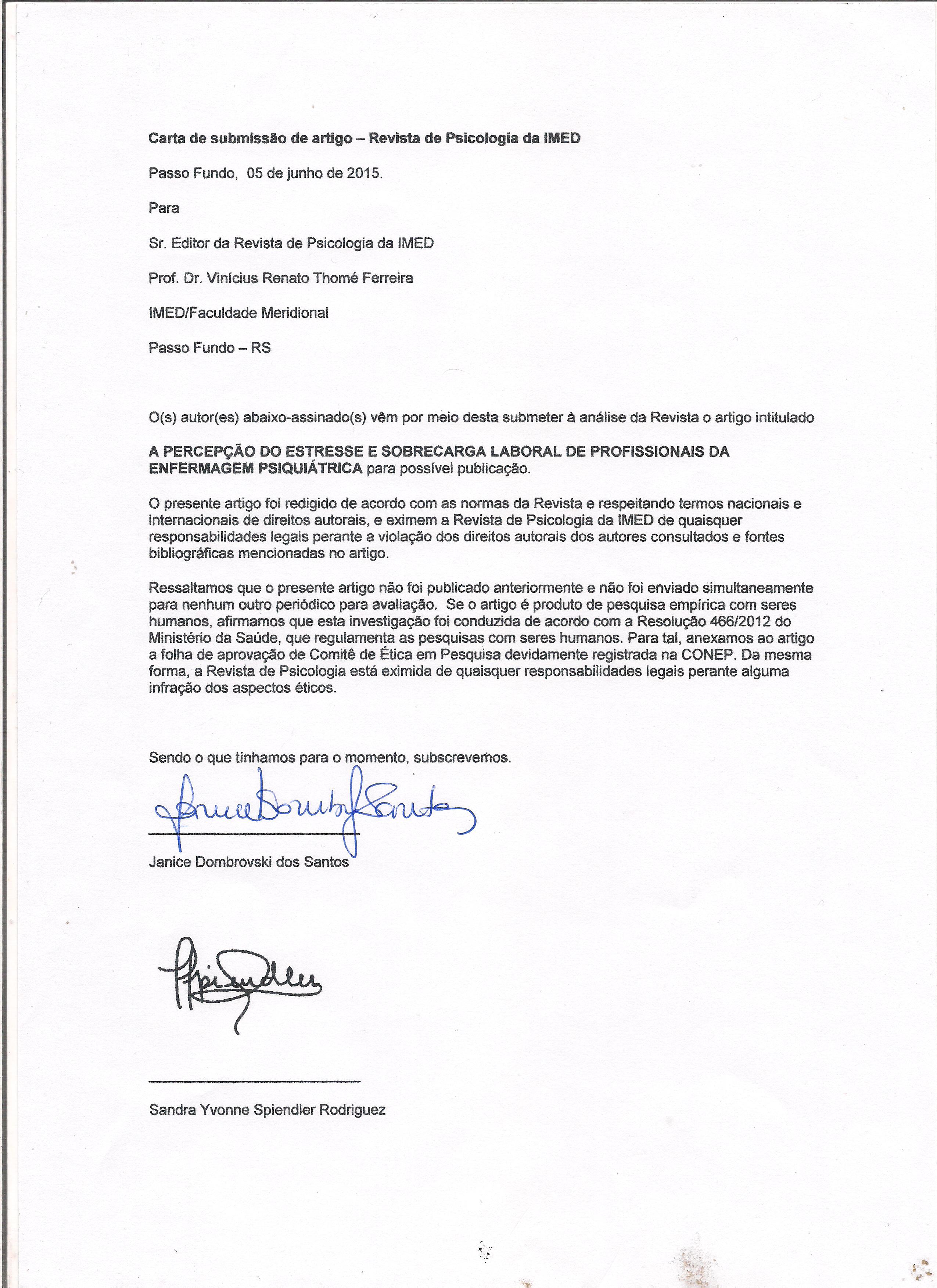 Rodriguez, S.Y.S, Carlotto, M. S.; Ogliari, D; Giordani, K. (no prelo). Estressores Ocupacionais em Psicólogos Clínicos Brasileiros. Psicogente.